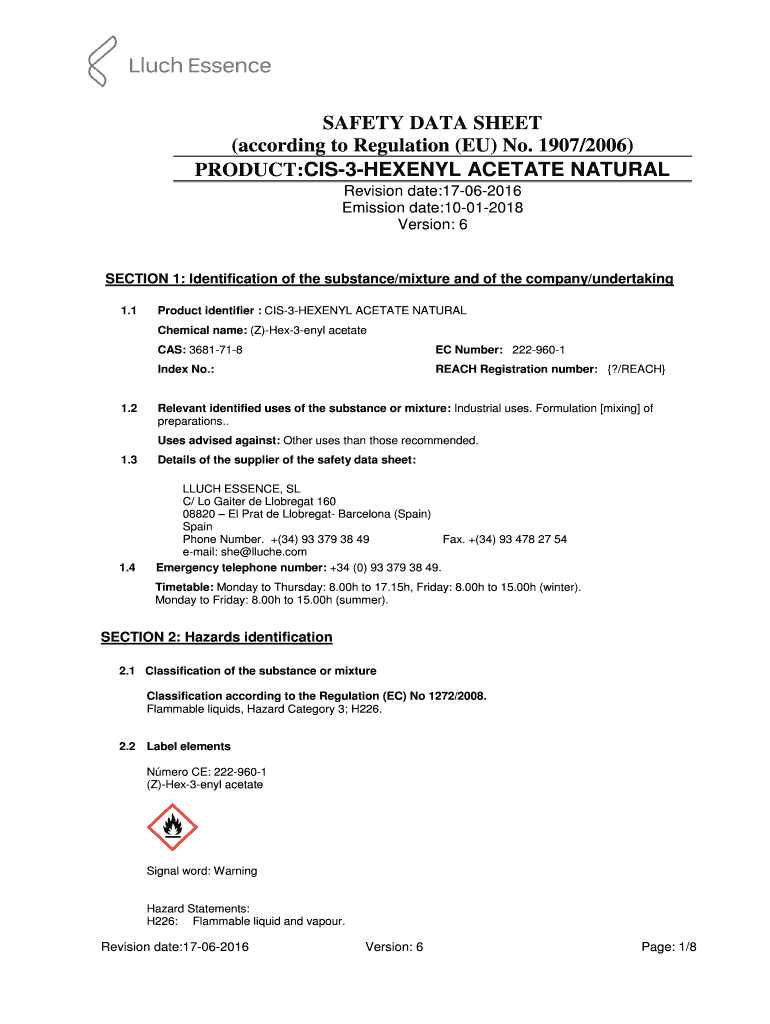 PRODUCT:CIS3HEXENYL ACETATE NATURAL