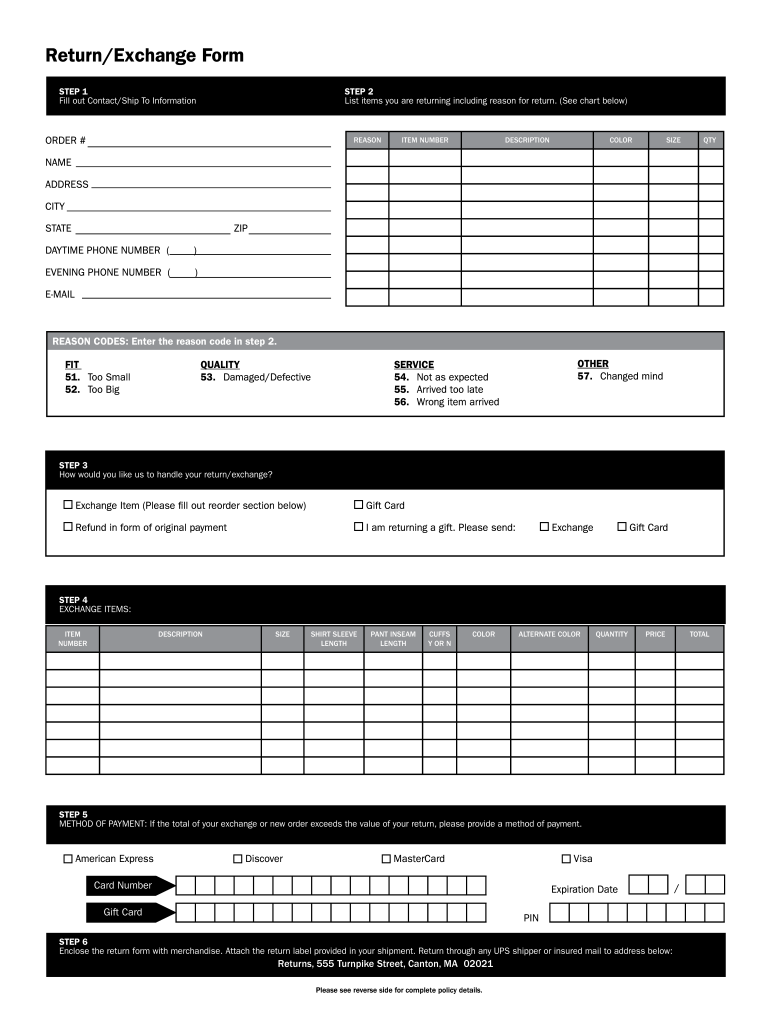 Return/Exchange Form