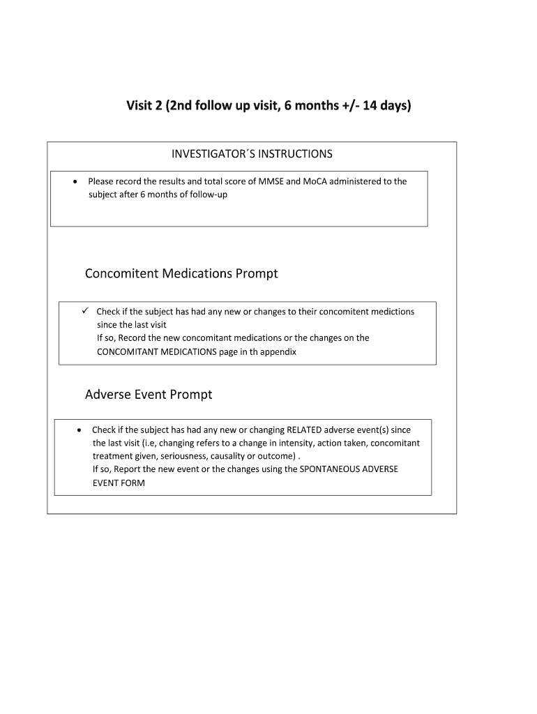 Visit 2 (2nd follow-up visit, 6 months +/ 14 days) INVESTIGATORS INSTRUCTIONS Please record the results and total score of MUSE and Mock administered to the subject after 6 months of followupConcomitent