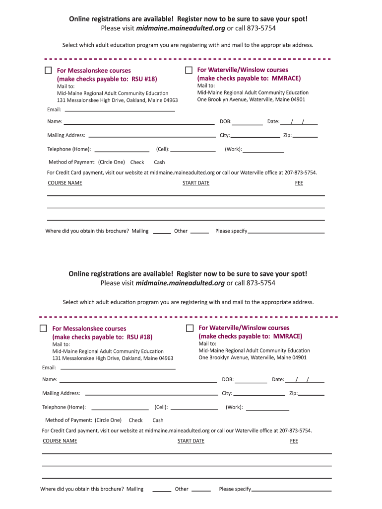 Get the free Come Learn With Us! - Mid-Maine Adult Education
