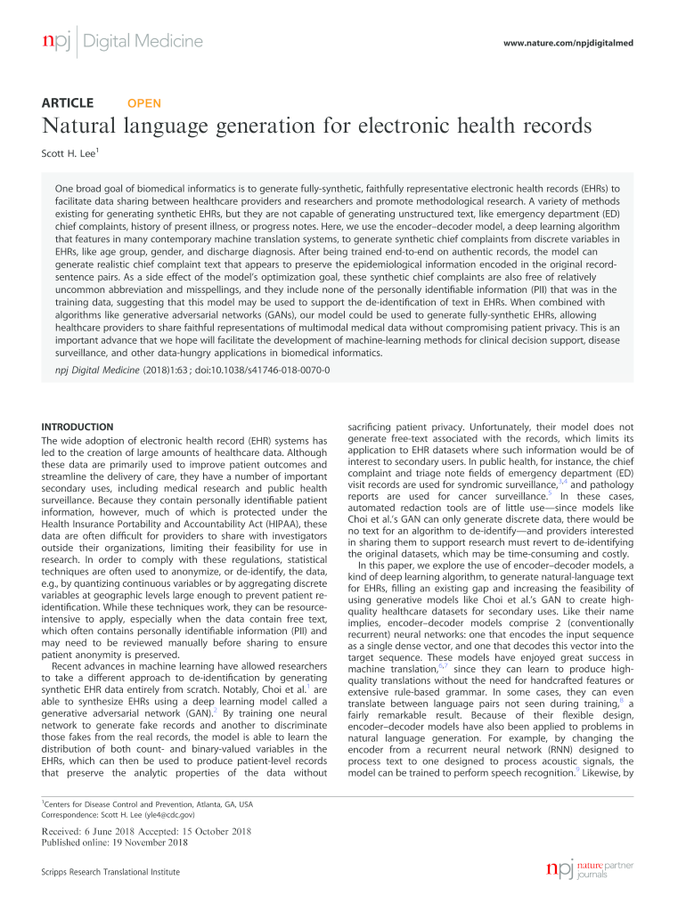 Get the free Natural language generation for electronic health records. npj Digital Medicine, doi