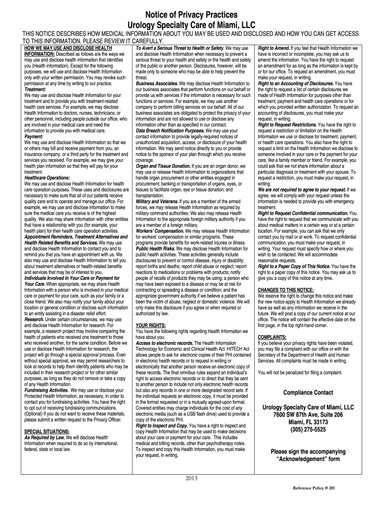Get the free Notice of Privacy Practices Urology Specialty Care of ...