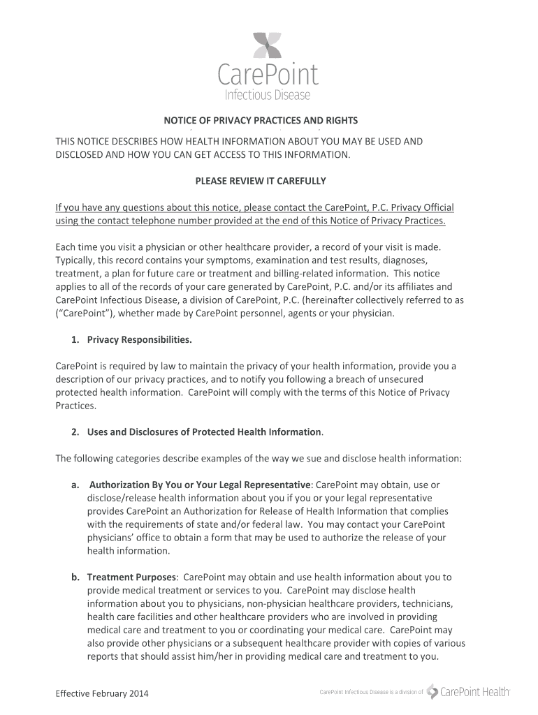 Get the free NOTICE OF PRIVACY PRACTICES AND RIGHTS CarePoint ...