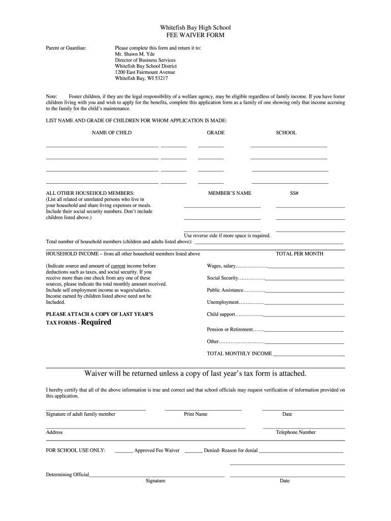 FEE WAIVER FORM