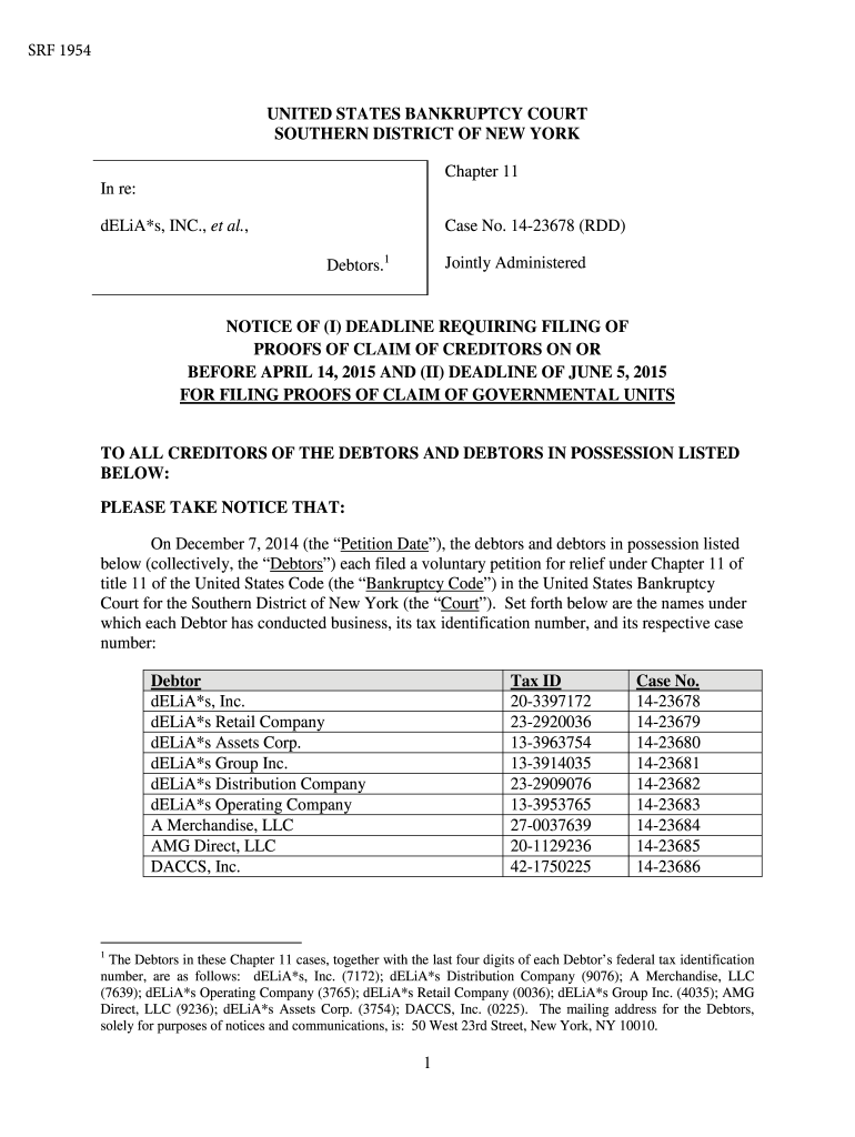 Case No. 1423678 (RED)Delia’s, INC., et al.,