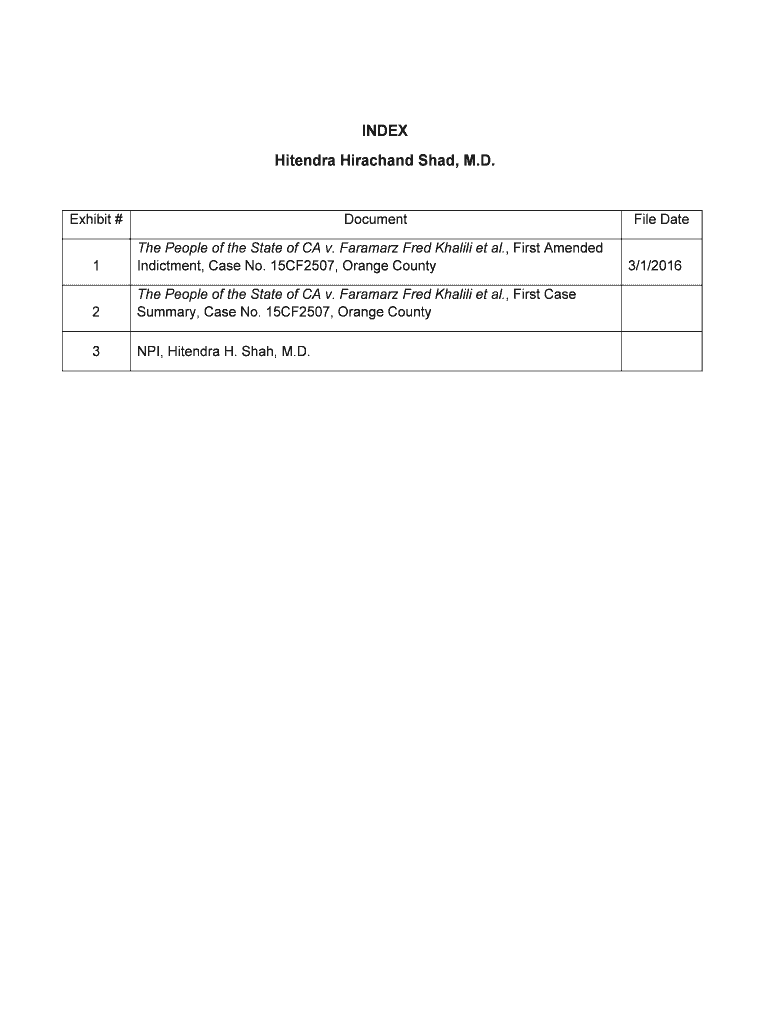 Jitendra Firsthand Shad, M.D. Exhibit #Document1The People of the State of CA v. Faramarz Fred Khalil et al., First Amended