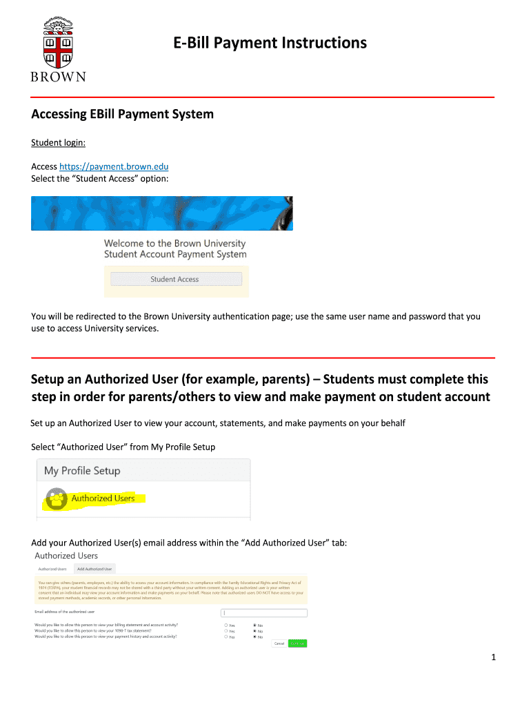 Get the free Student Account and EBillingBursar Office - Brown University