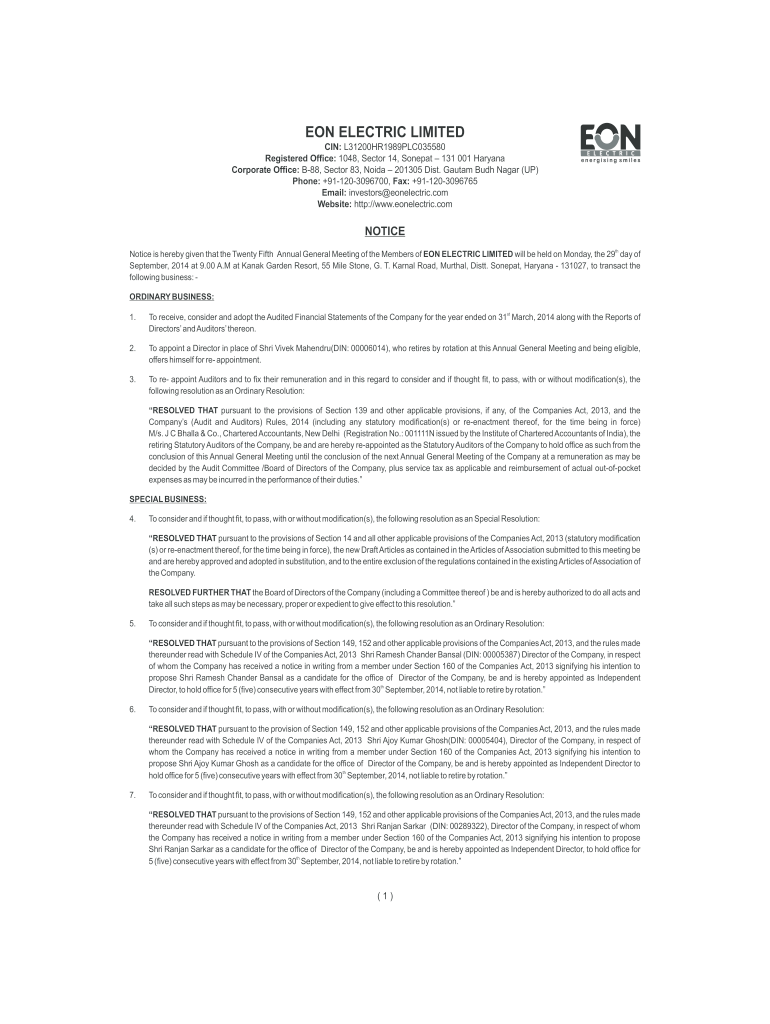 Get the free Online EON ELECTRIC LIMITED Fax Email Print ...