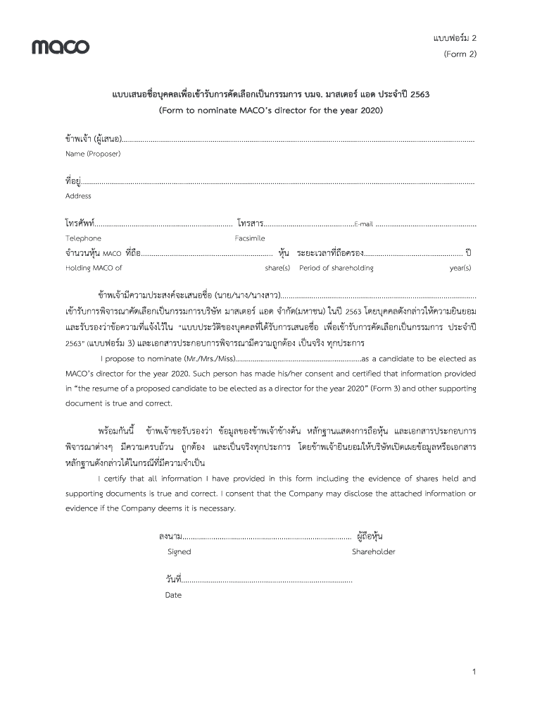2 (Form 2). 2563 (Form to nominate macOS director for the year 2020) ().........................................................................................................................................