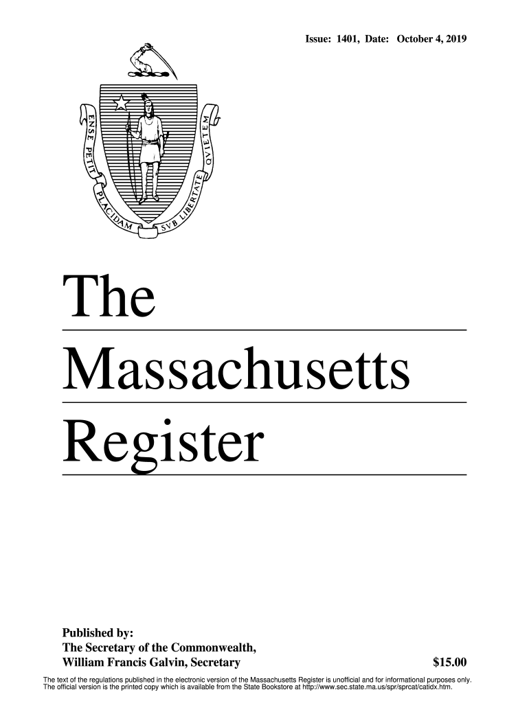 William Francis Galvin, Secretary$15.00The text of the regulations published in the electronic