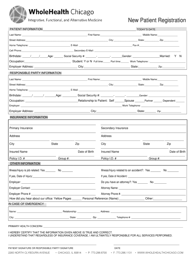 New Patient Registration TODAYS DATE:PATIENT Informational Name: First Name: Middle Name: Street Address: City: State: Zip: Home Telephone: Email: Fax #: Cell Phone: Secondary Email: Birthdate: /