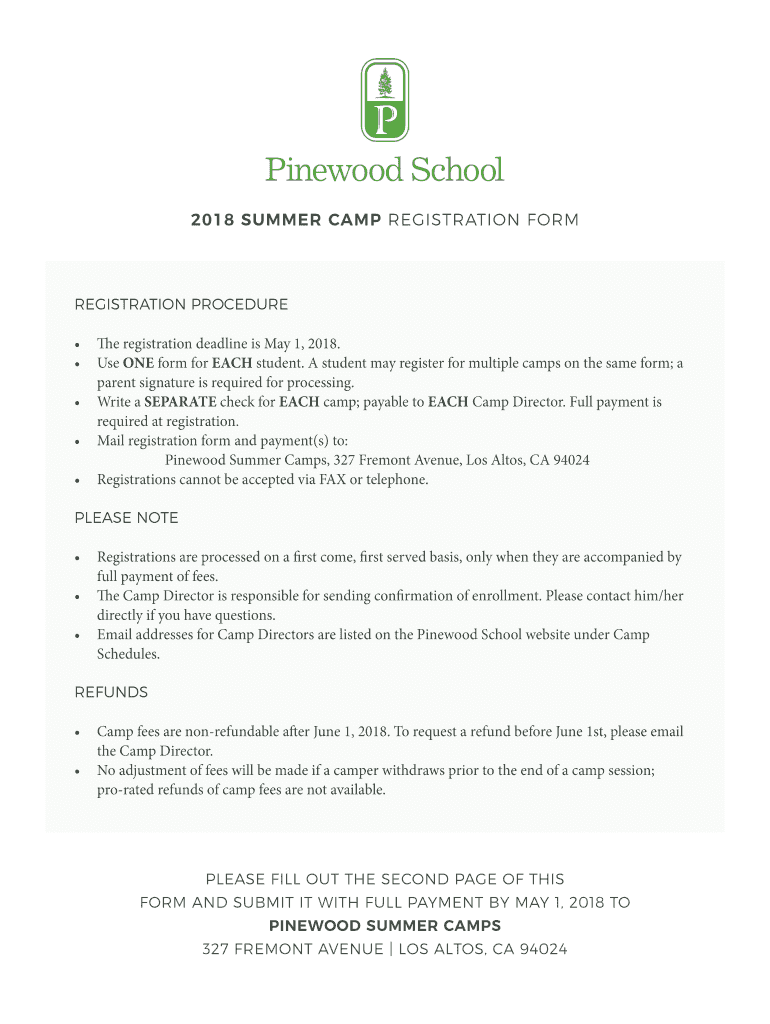 Use ONE form for EACH student. A student may register for multiple camps on the same form; a