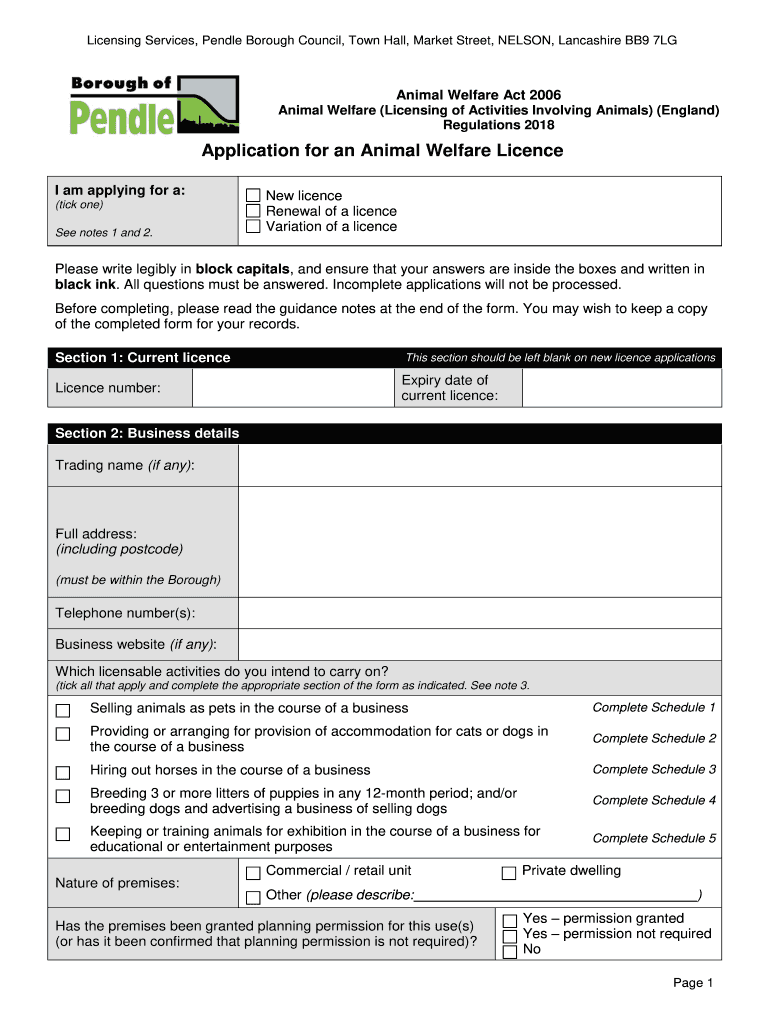 Get the free Changes to animal licences - Pendle Borough Council