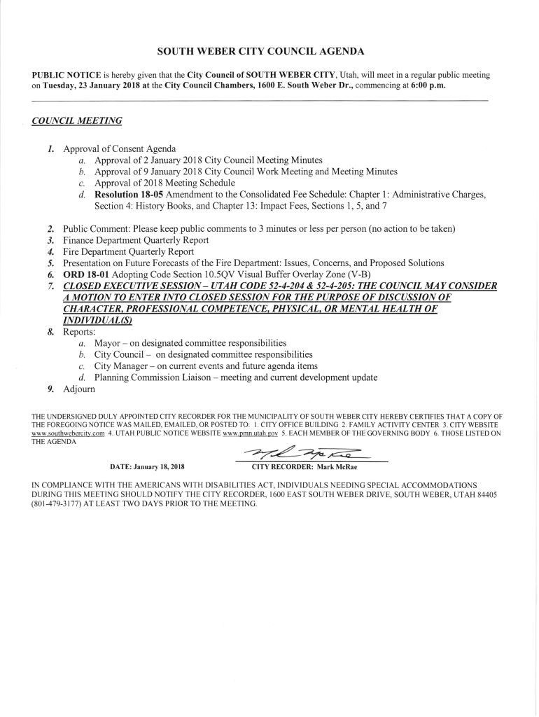 Get the free south weber city council agenda - Utah.gov