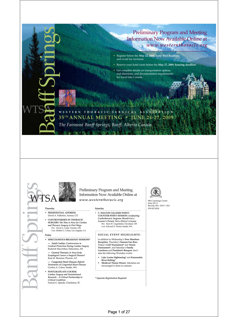 Ban ff SpringsWTSAPreliminary Program and Meeting Information Now Available Online at www.westernthoracic.org Register before the May 22, 2009, Early Bird deadline, and avoid fee increases. Reserve
