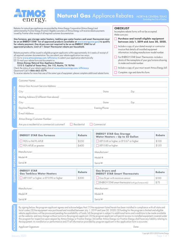 Natural Gas Appliance Rebates for natural gas appliances are provided by Atmos Energy Corporation (Atmos Energy) and administered by Frontier Energy (Frontier). Eligible customers of Atmos Energy