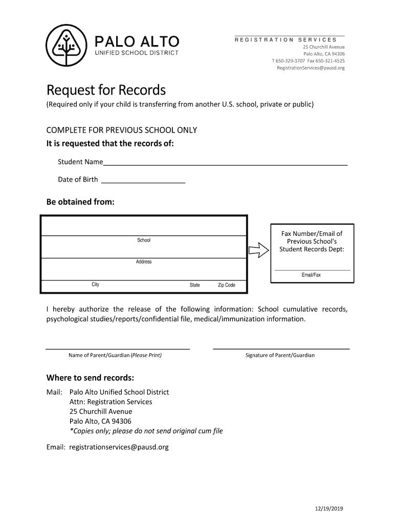 Get the free Request for Records - Palo Alto Unified School District