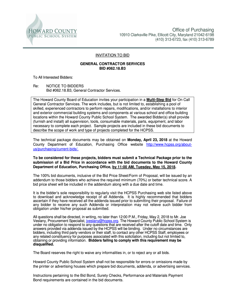 Get the free Invitation to Bid - General Contractor Services (Multi-Step Bid ...