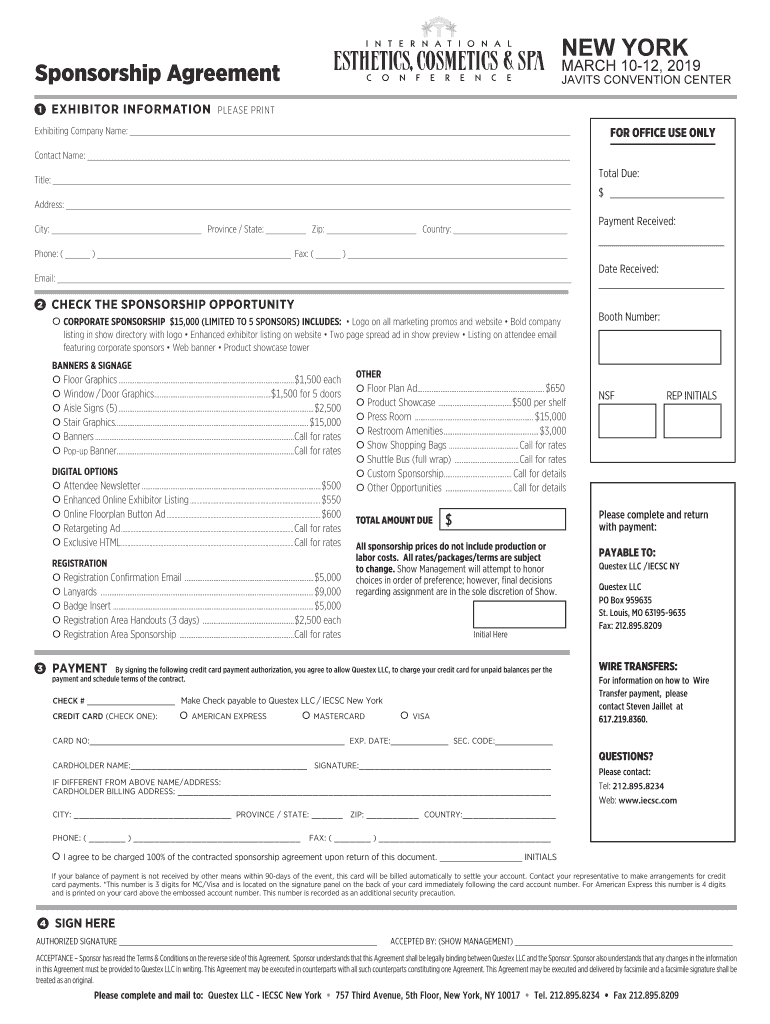 NEW YORKMARCH 1012, 2019Sponsorship Agreement 1EXHIBITOR INFORMATIONJAVITS CONVENTION CENTERPIECE PRINTExhibiting Company Name: FOR OFFICE USE Non-contact Name: Title: Address: City: Province / State: