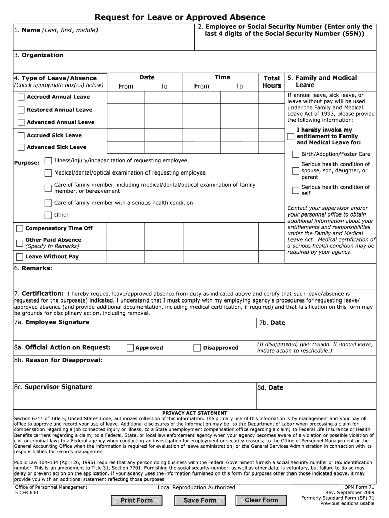 OPM Form 71 is the official request form used by federal employees to request leave from work.