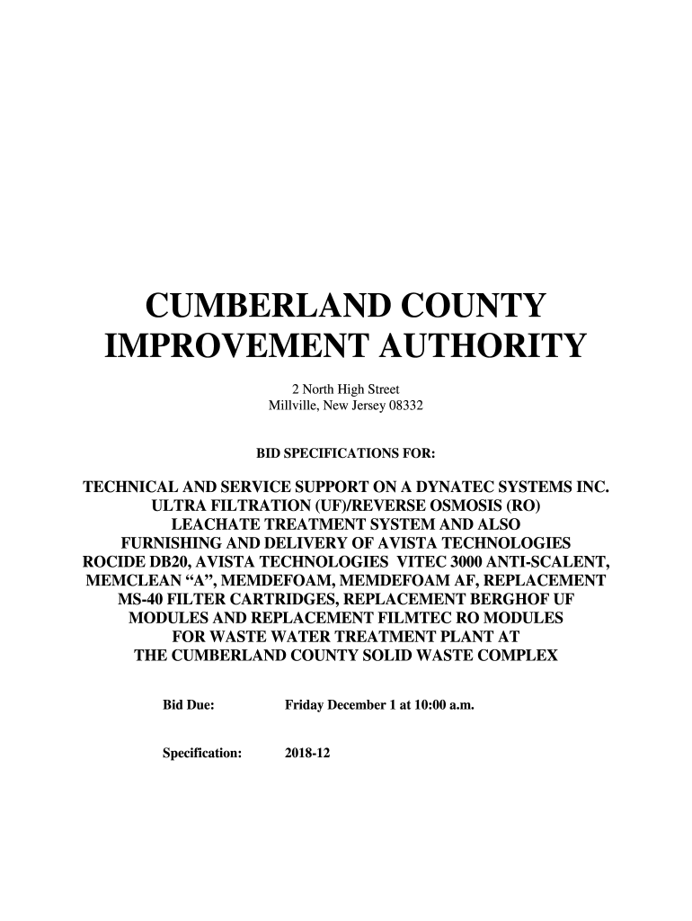 Millville, New Jersey 08332BID SPECIFICATIONS FOR:TECHNICAL AND SERVICE SUPPORT ON A DONATED SYSTEMS INC.