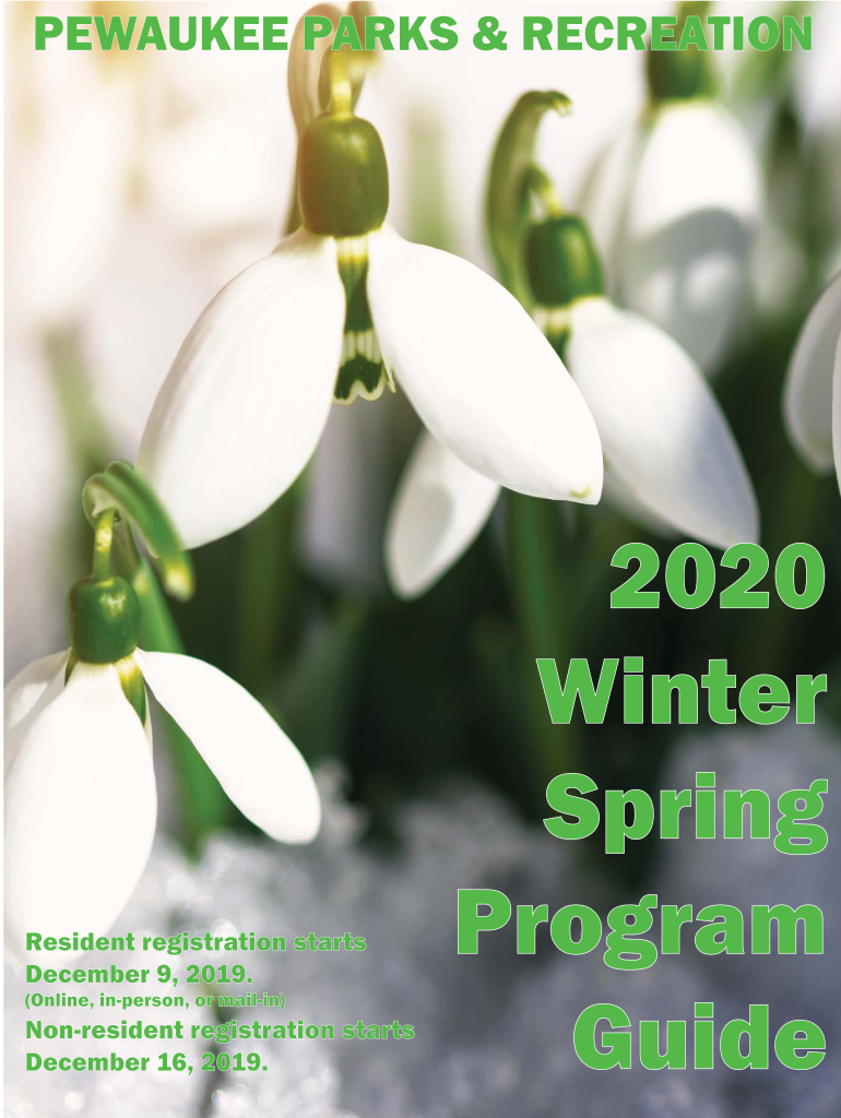 PEAKED PARKS & RECREATIONResident registration starts December 9, 2019. (Online, unperson, or mailing)Nonresident registration starts December 16, 2019.2020 Winter Spring Program Guide2Registration