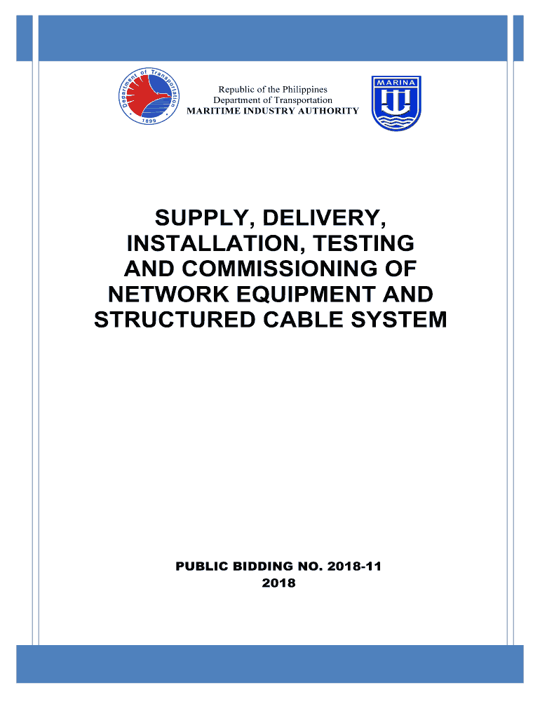 Republic of the Philippines Department of Transportation MARITIME INDUSTRY AUTHORITYSUPPLY, DELIVERY, INSTALLATION, TESTING AND COMMISSIONING OF NETWORK EQUIPMENT AND STRUCTURED CABLE SYSTEMPUBLIC