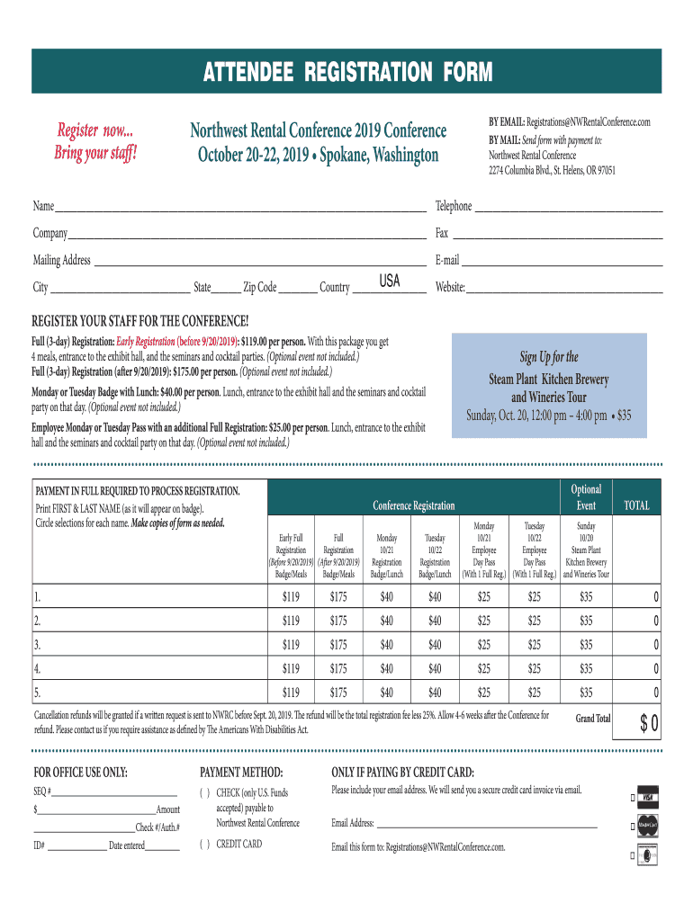ATTENDEE REGISTRATION FORM Register now... Bring your staff!BY EMAIL: Registrations NWRentalConference.com BY MAIL: Send form with payment to: Northwest Rental Conference 2274 Columbia Blvd., St.
