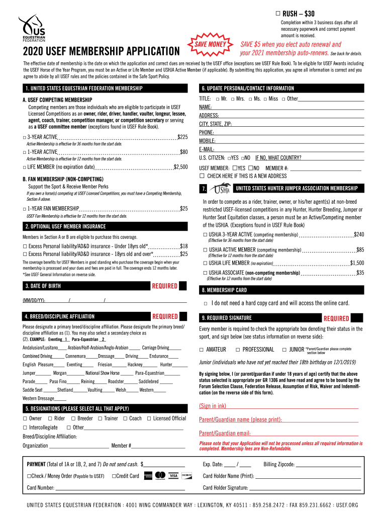 RUSH $30Completion within 3 business days after all necessary paperwork and correct payment amount is received. SAVE MONEY2020 USED MEMBERSHIP APPLICATIONS AVE $5 when you elect auto-renewal and your