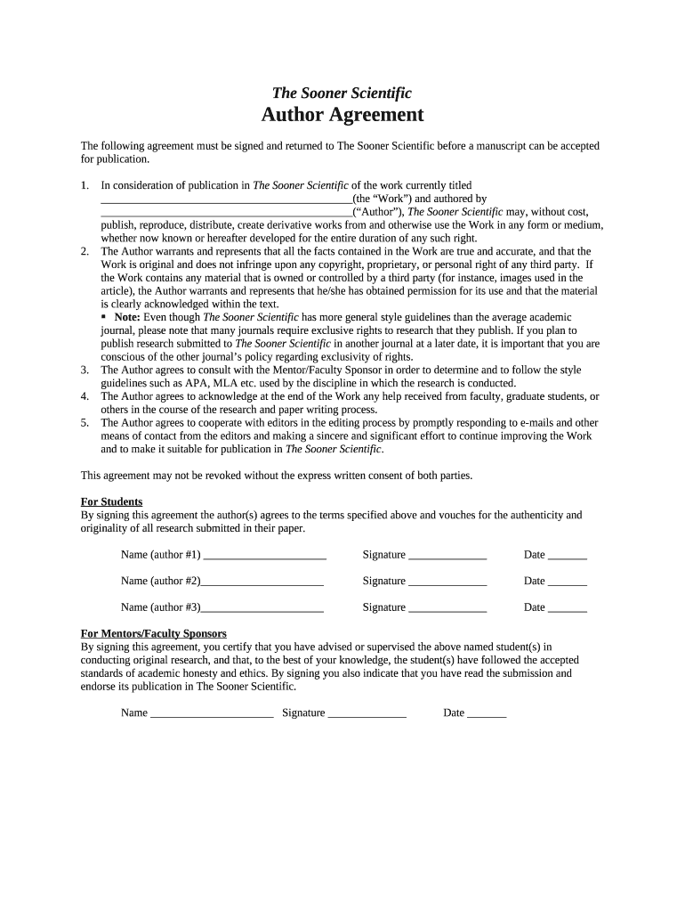 Instructions for the form The following agreement must be signed and returned to the Stanford Undergraduate Research Journal (SURJ) before a manuscript