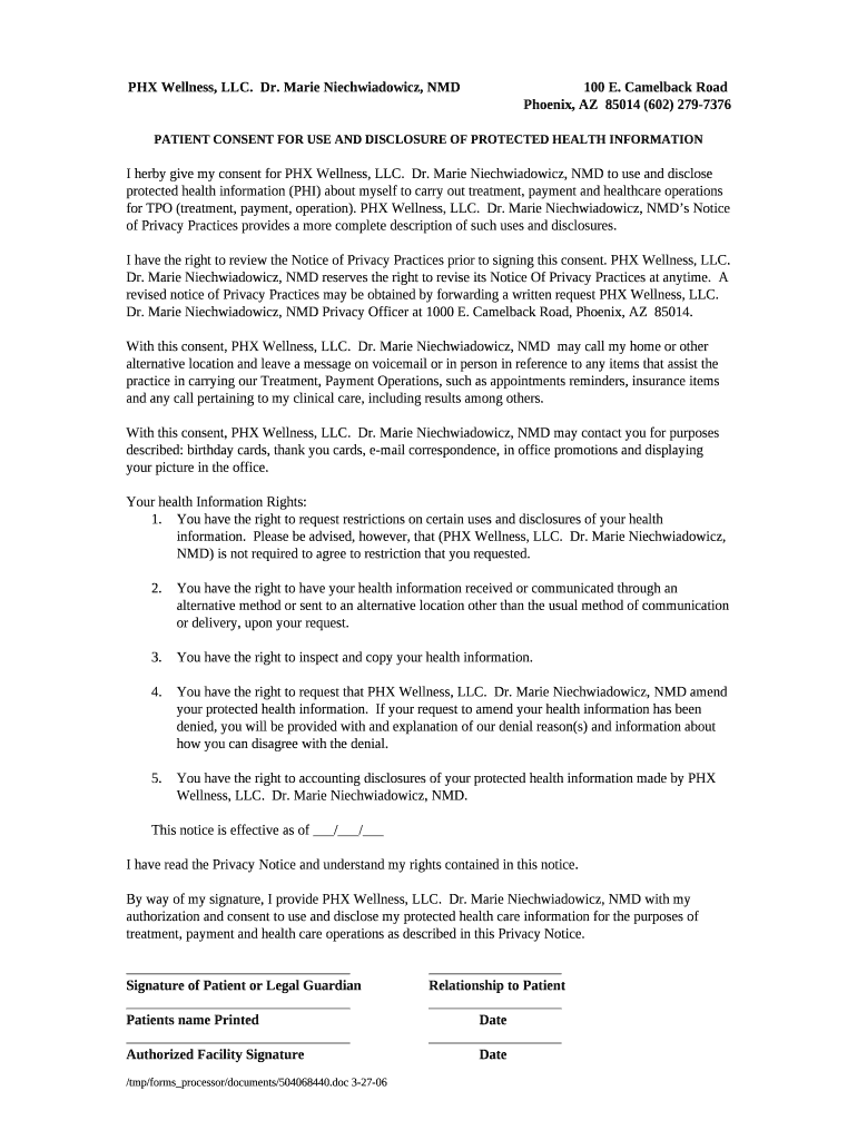 The Jan Zieren, DO - Family Doctor in Phoenix, AZ - Wellness.com is a writable document that can be filled-out and signed for specified needs. In that case, it is furnished to the exact addressee in order to provide some details and data. The completion and signing may be done or using a trusted application e. g. PDFfiller. Such tools help to submit any PDF or Word file online. While doing that, you can customize it for the needs you have and put legit digital signature. Once done, the user sends the Jan Zieren, DO - Family Doctor in Phoenix, AZ - Wellness.com to the respective recipient or several of them by mail and also fax. PDFfiller includes a feature and options that make your document of MS Word extension printable. It provides different options for printing out. It does no matter how you distribute a form after filling it out - in hard copy or by email - it will always look professional and firm. In order not to create a new document from the beginning all the time, make the original form as a template. Later, you will have an editable sample.