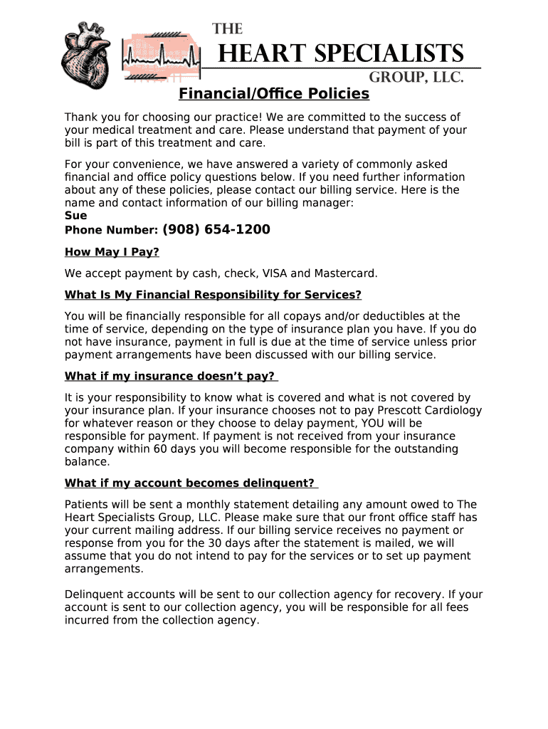 Patient Financial Policy - Heart Specialists Group template instructions