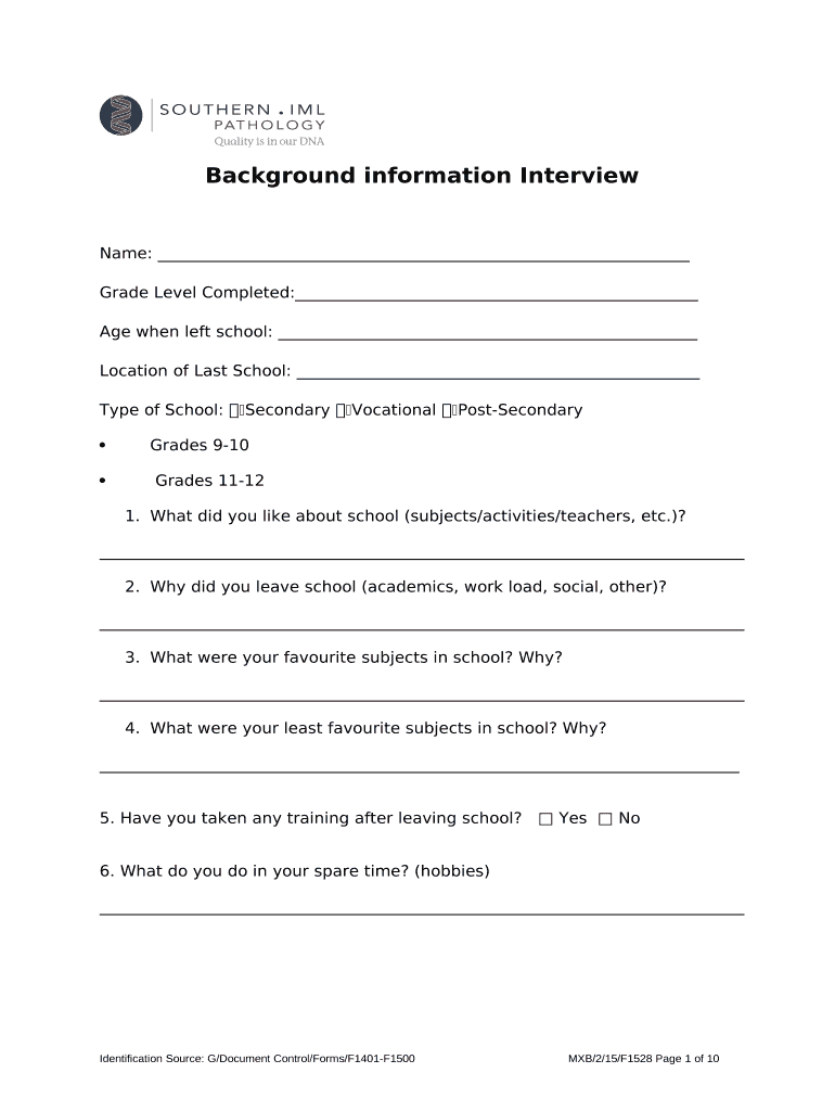 The Background ination Interview is a Word document that should be submitted to the specific address to provide specific information. It has to be filled-out and signed, which may be done manually, or using a particular solution like PDFfiller. It allows to fill out any PDF or Word document directly from your browser (no software requred), customize it according to your needs and put a legally-binding electronic signature. Once after completion, user can easily send the Background ination Interview to the appropriate person, or multiple ones via email or fax. The editable template is printable as well from PDFfiller feature and options presented for printing out adjustment. In both digital and physical appearance, your form will have a organized and professional appearance. It's also possible to turn it into a template for later, there's no need to create a new document from the beginning. Just amend the ready document.