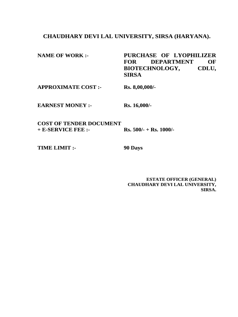 Frequently asked questions about the form Name of work :-PURCHASE OF LYOPHILIZER FOR DEPARTMENT OF BIOTECHNOLOGY, CDLU, SIRSA