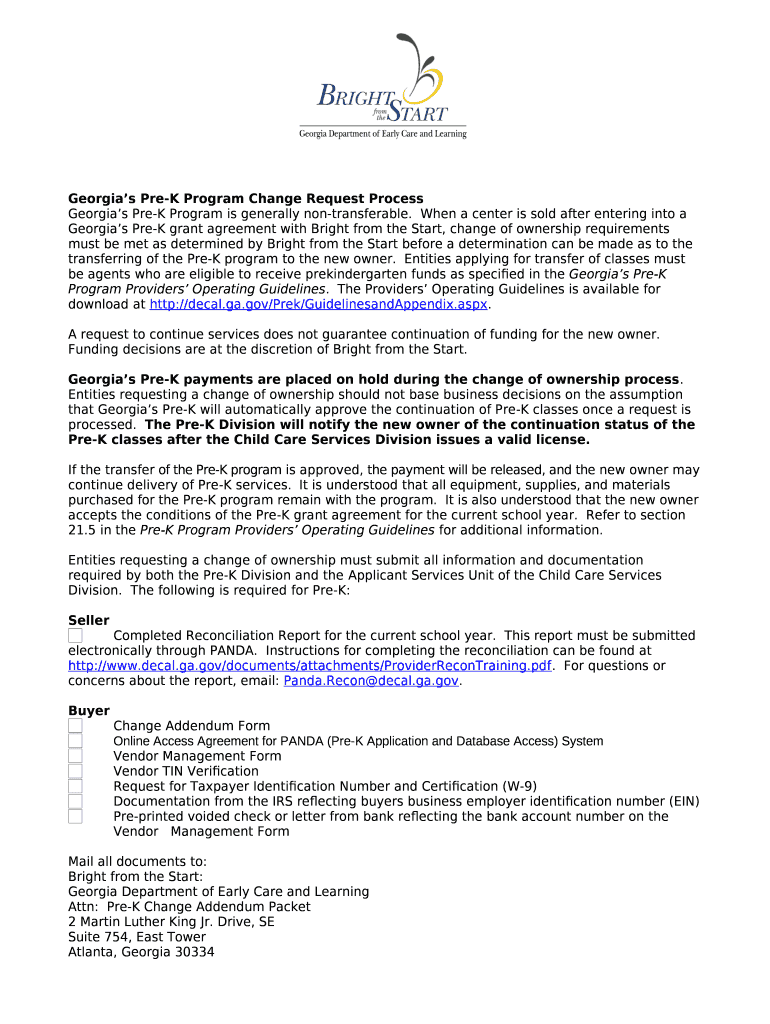 What is Georgia's Pre-K Program Change Request Process - Bright ... Form?