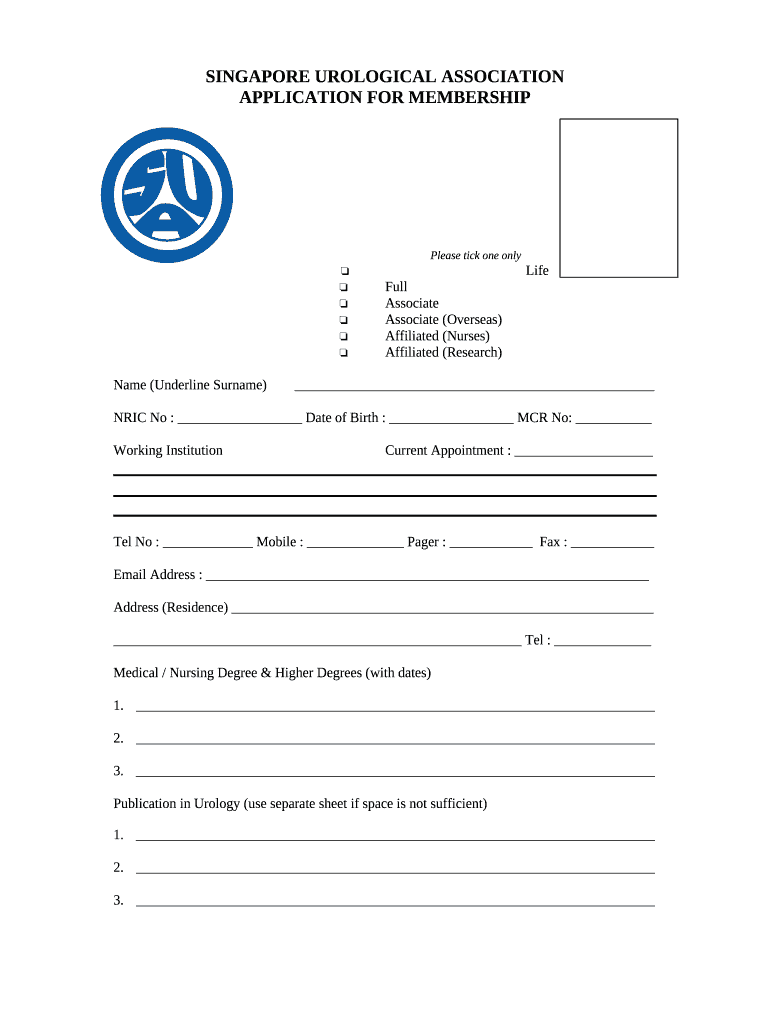 What is SINGAPORE UROLOGICAL ASSOCIATION Form?