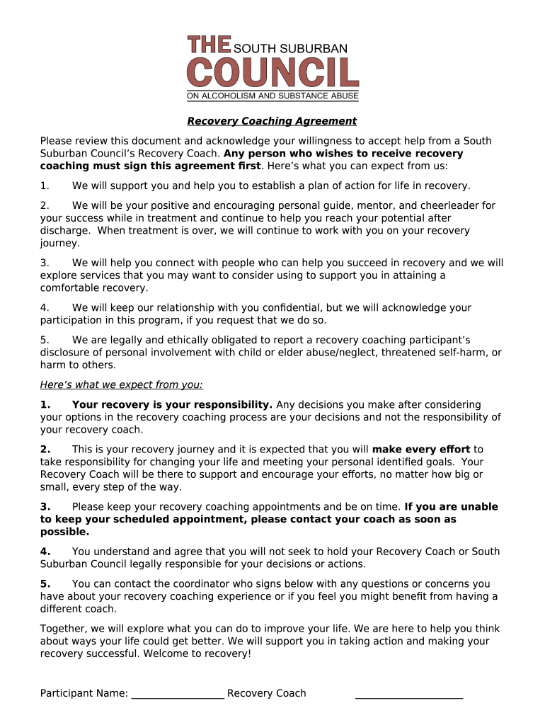 What is The Scope and Limits of Recovery Coaching - Recovery ... Form?