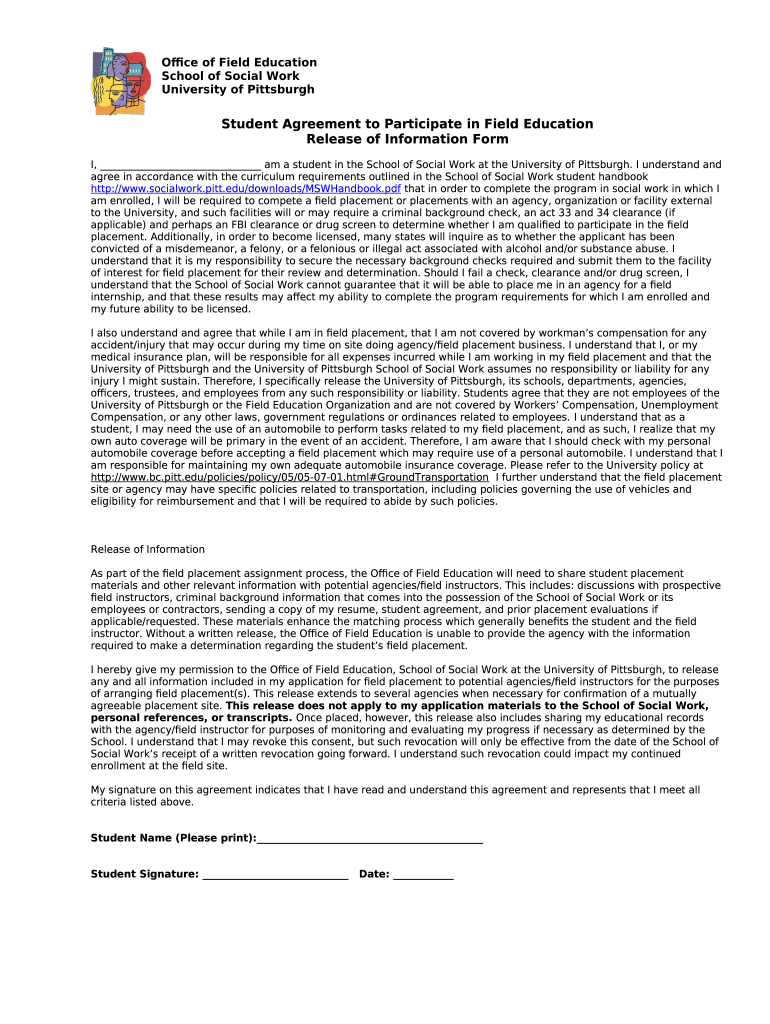 What is I understand and agree in accordance with the curriculum requirements outlined in the School of Social Work student handbook http://www Form?