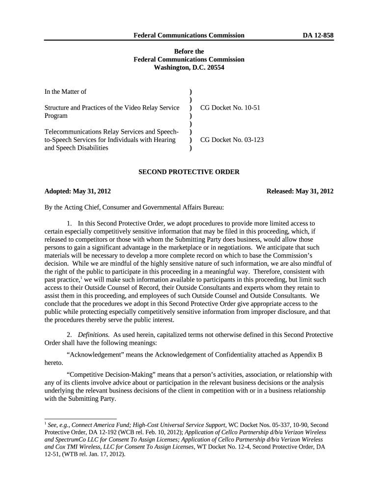 The Telecommunications Relay Services (TRS)Federal ... - FCC is a document that can be completed and signed for specified purpose. In that case, it is furnished to the relevant addressee to provide certain details of any kinds. The completion and signing may be done in hard copy or via a trusted application e. g. PDFfiller. Such applications help to submit any PDF or Word file online. It also allows you to edit it according to your needs and put legit digital signature. Once finished, you send the Telecommunications Relay Services (TRS)Federal ... - FCC to the recipient or several recipients by email and also fax. PDFfiller has got a feature and options that make your template printable. It provides a variety of settings for printing out. No matter, how you will deliver a document - in hard copy or electronically - it will always look well-designed and clear. In order not to create a new file from scratch over and over, make the original Word file into a template. After that, you will have a customizable sample.