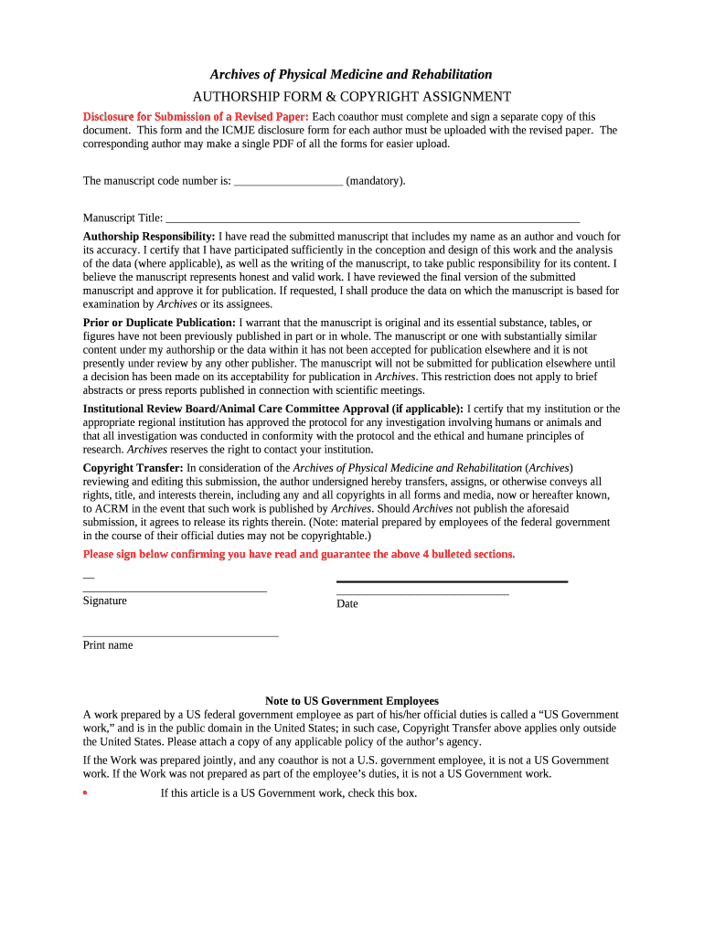 - If you think this is not enough for you, choose additional security features you like then. They manage you to request the two-factor verification for every person trying to read, annotate or edit your file. PDFfiller also provides specific folders where you can put your Disclosure for Submission of a Revised Paper: Each coauthor must complete and sign a separate copy of this document ms word form and encrypt them with a password.