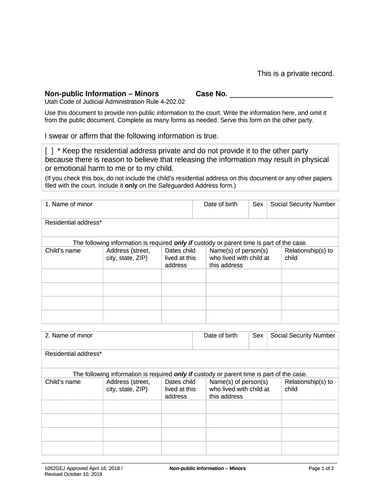Instructions for the Non-public Ination - Minors. Non-public Ination - Minors form
