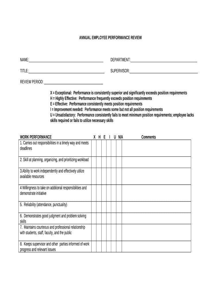 Once you're about filling out ANNUAL EMPLOYEE PERANCE REVIEW FOR PHYSICAL PLANT SHOPS & PROGRAMS SECTION Word form, remember to prepared all the necessary information. It is a important part, since some typos can cause unpleasant consequences starting with re-submission of the whole word form and completing with deadlines missed and you might be charged a penalty fee. You should be especially observative when writing down digits. At a glimpse, this task seems to be uncomplicated. Nonetheless, it's easy to make a mistake. Some people use such lifehack as saving everything in a separate file or a record book and then attach this information into document's template. Nevertheless, try to make all efforts and provide valid and correct info in your ANNUAL EMPLOYEE PERANCE REVIEW FOR PHYSICAL PLANT SHOPS & PROGRAMS SECTION word form, and check it twice during the filling out all fields. If it appears that some mistakes still persist, you can easily make some more amends when you use PDFfiller editing tool and avoid blown deadlines.