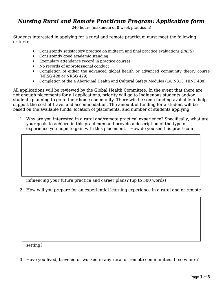 What is Nursing Rural and Remote Practicum Program: Application Form?
