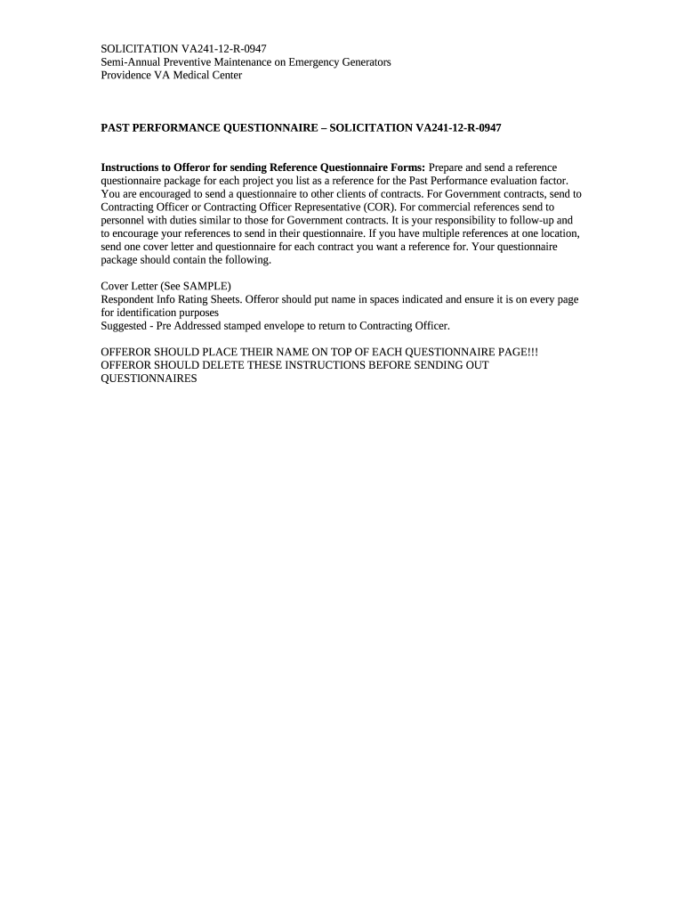 Instructions for the form Past Perance Questionnaire one way of ... - APTAC