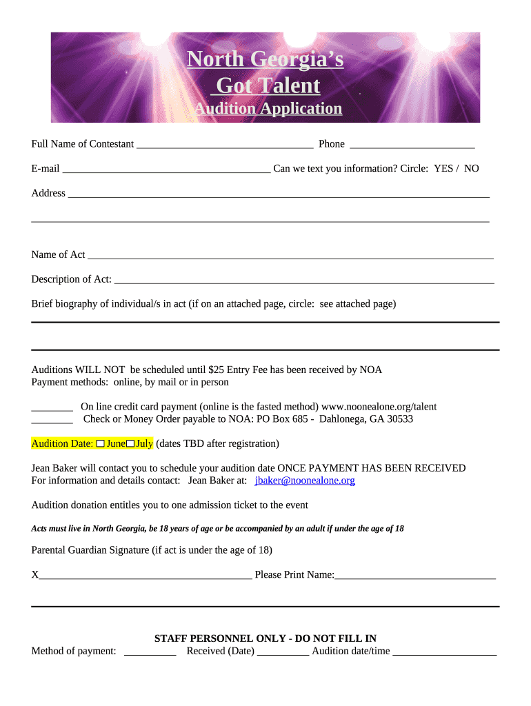 How to fill out North Georgias Got Talent (NGGT) Audition Application