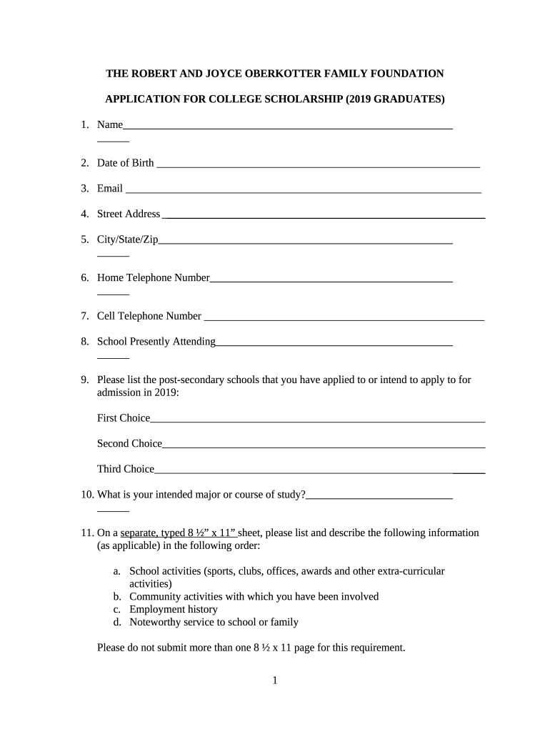 Template Robert & Joyce Oberkotter Family FoundationFind ... instructions