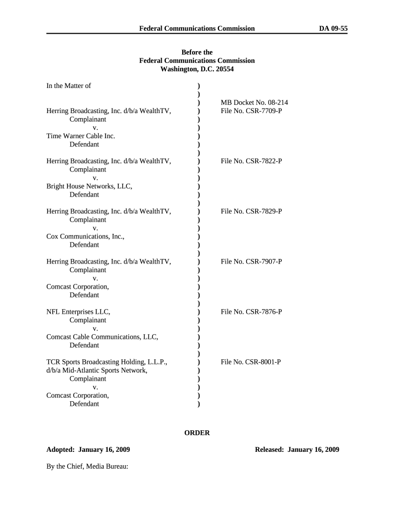 Template Federal Communications Commission DA 09-55 Before the ... instructions