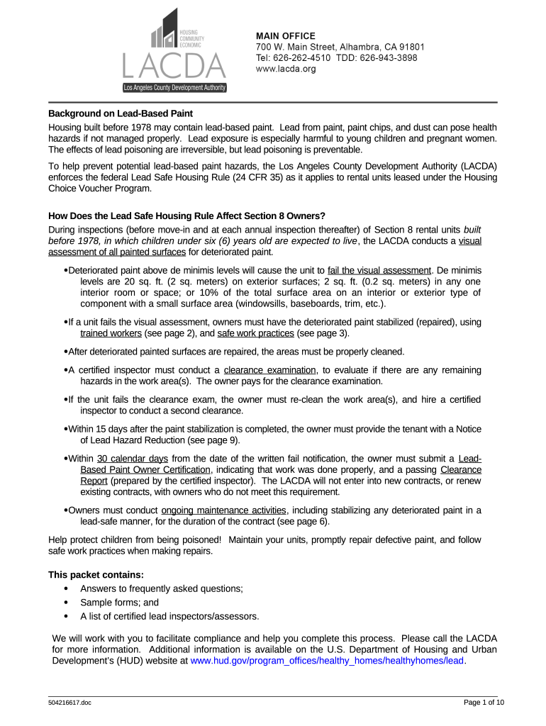 Instructions for the Lead Paint Disclosure - Wesleyan University form
