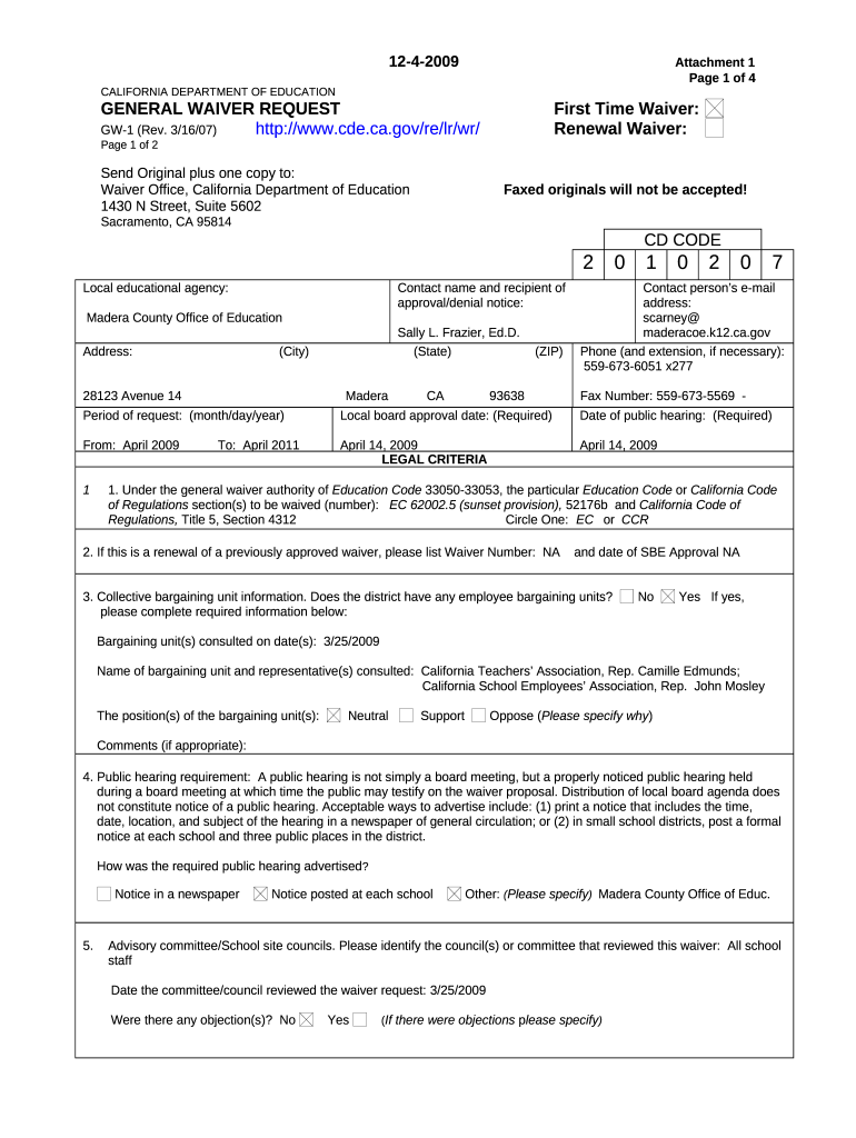 Instructions for the November 2012 Waiver Item W-15 - California Department of ... form