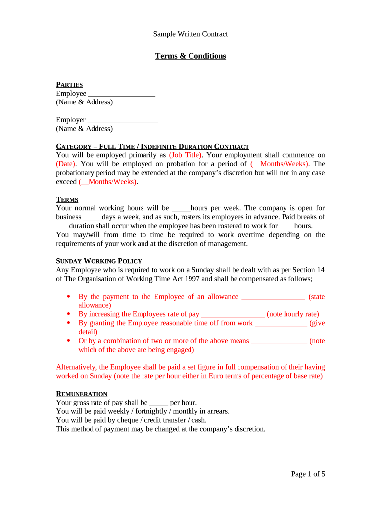 Template Terms and Conditions of EmploymentLawyer.ie legal summary instructions